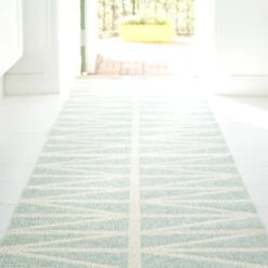 Het stijlvolle turkoois Helmi vloerkleed van het Zweedse bedrijf Brita Sweden, is verkrijgbaar in verschillende kleuren en verschillende maten.