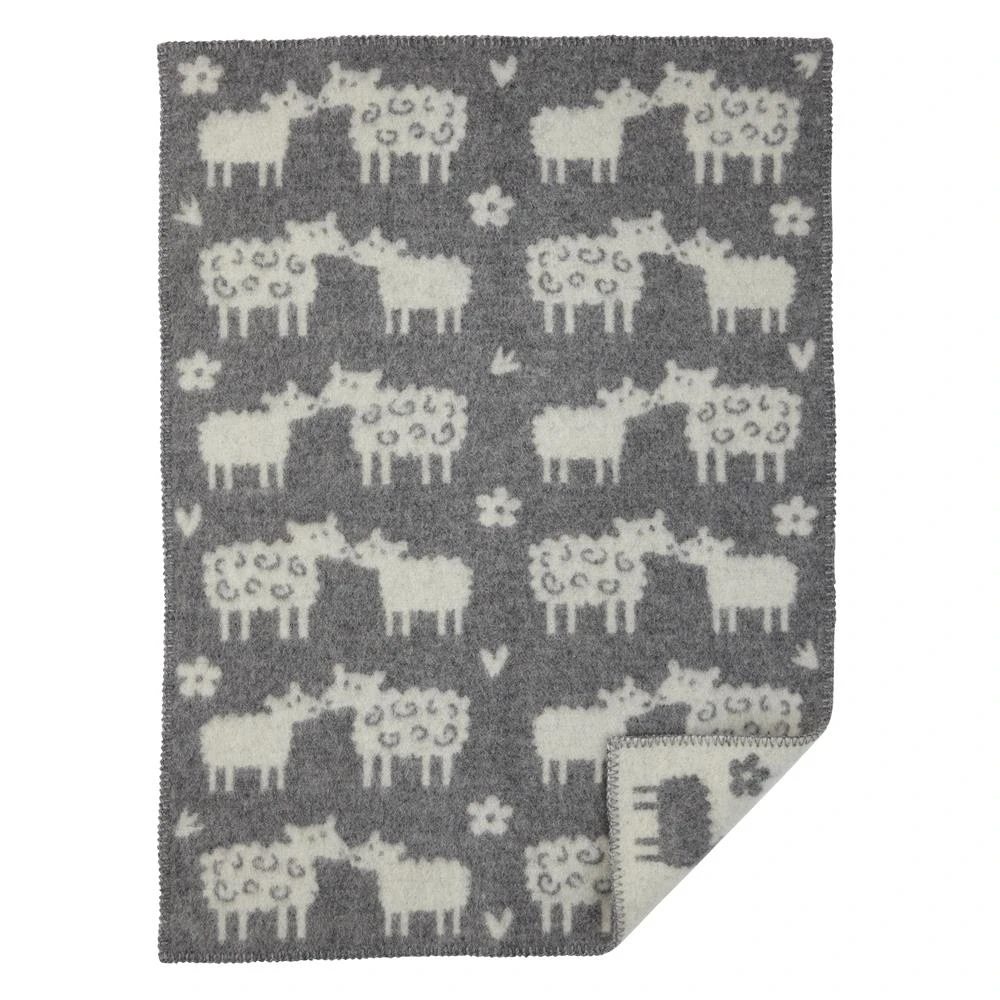Bää is een aangenaam, warme kinderplaid van wol, en is perfect voor in de buggy. Maak uw keuze uit de schapen op grijze, blauwe of roze achtergrond.