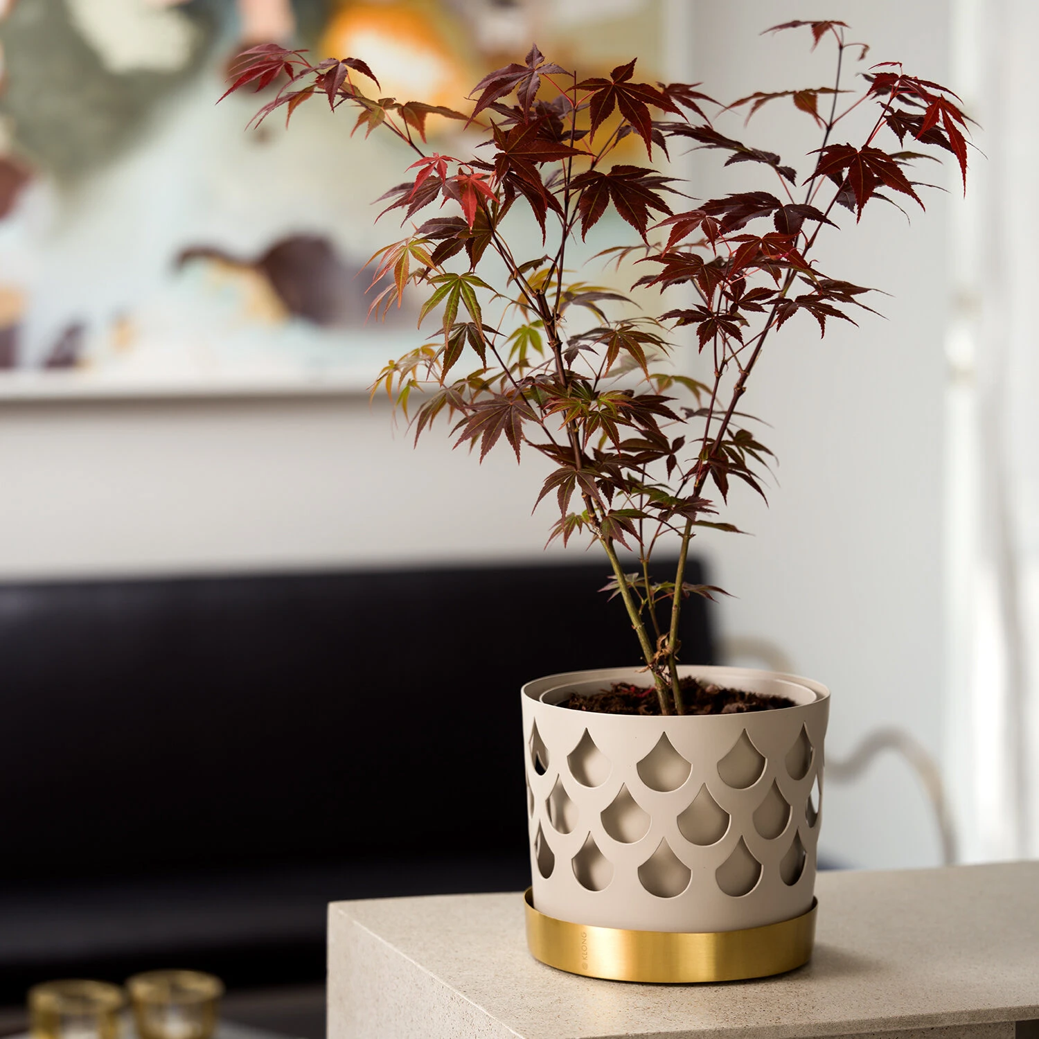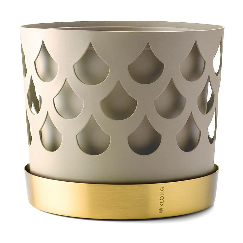 Klong Trio Drop Bloempot Beige Met Schotel Van Messing