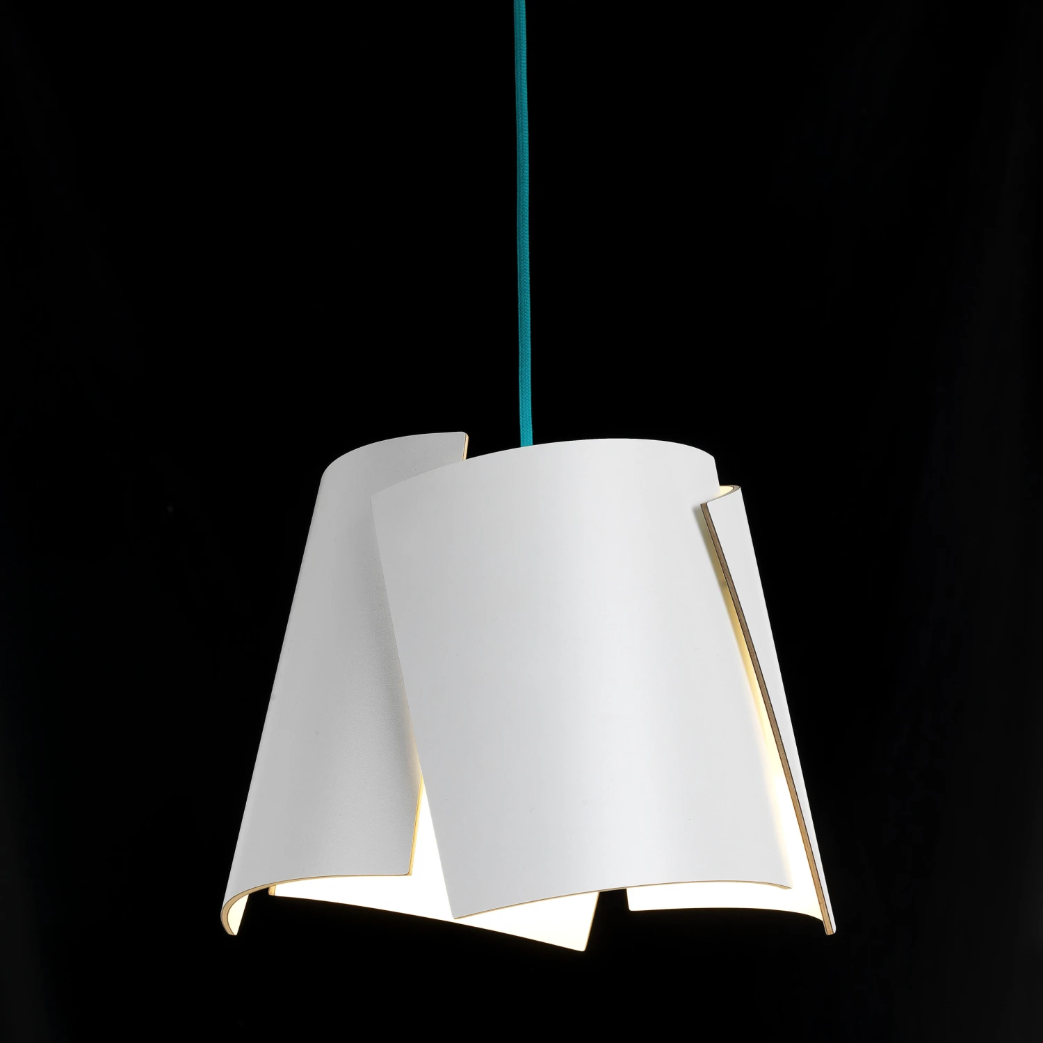 De witte Leaf hanglamp is gemaakt van gelamineerd hout met een groen, rood of turkoois textiel snoer, ontworpen door Marit Stigsdotter en Staffan Lind. De lamp heeft een puur en simpel design. De lamp is verkrijgbaar in zwart, blauw, rood en natuurlijk beukenhout.